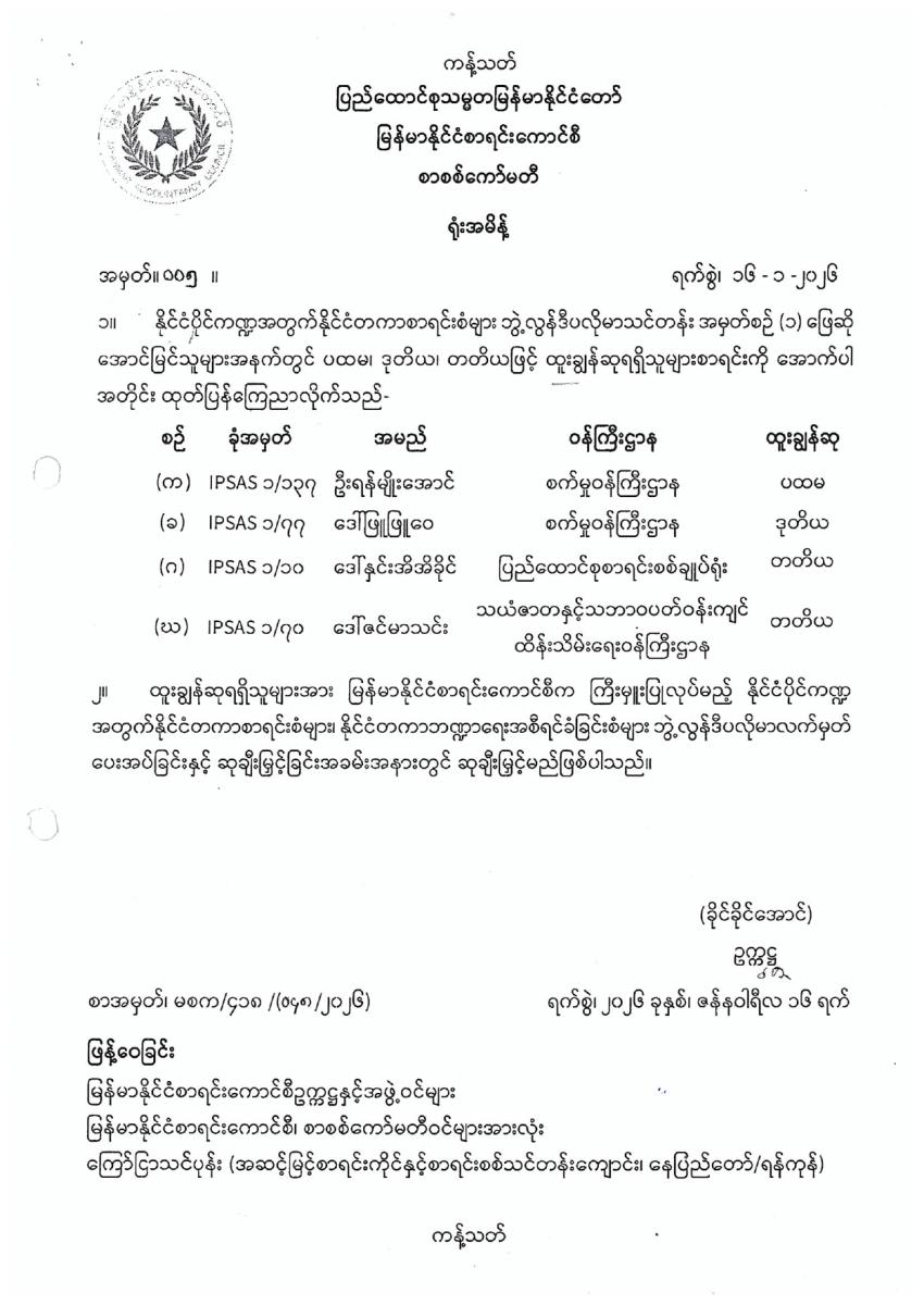 လက်မှတ်ရပြည်သူ့စာရင်းကိုင် မှတ်ပုံတင်ခြင်း