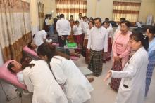 ပြည်ထောင်စုစာရင်းစစ်ချုပ် မြန်မာအမျိုးသမီးများနေ့ကို ကြိုဆိုဂုဏ်ပြုသောအားဖြင့် ဝန်ထမ်းများ စုပေါင်းသွေးလှူဒါန်းမှုကို ကြည့်ရူအားပေးခြင်း