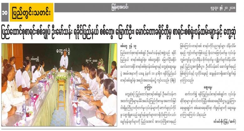 ပြည်ထောင်စုစာရင်းစစ်ချုပ် ဦးမော်သန်း ရခိုင်ပြည်နယ် စစ်တွေ၊ မြောက်ဦး ၊ မောင်တောခရိုင်တို့မှ စာရင်းစစ်ရုံးဝန်ထမ်းများနှင့်တွေ့ဆုံ
