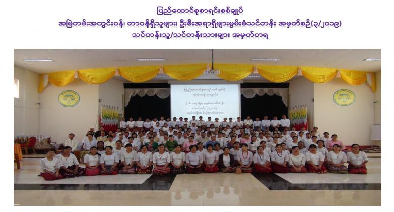 - ဝန်ထမ်းကျင့်ဝတ်သိက္ခာကို စောင့်ထိန်းကြရန်၊ နိုင်ငံဖွံ့ဖြိုးရေးအတွက် ကျရာအခန်းကဏ္ဍမှ အုတ်တစ်ချပ်၊ သဲတစ်ပွင့်အနေဖြင့် ပါဝင်ကြိုးပမ်းကြရန် တိုက်တွန်းမှာကြားလိုပါကြောင်း။