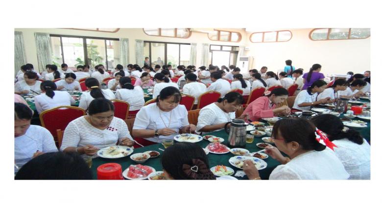 ၄။ သင်တန်းဆင်းပွဲအခမ်းအနားကို နံနက်ပိုင်း ၁၁ : ၀၀ နာရီတွင် ရုပ်သိမ်း၍ အခမ်းအနားတက်ရောက်လာသူများကို နေ့လယ်စာဖြင့် ဧည့်ခံကျွေးမွေးခဲ့ပါသည်။