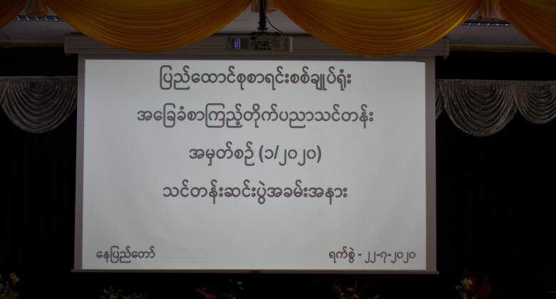 အခြေခံစာကြည့်တိုက်ပညာသင်တန်း အမှတ်စဉ်(၁/၂၀၂၀) သင်တန်းဆင်းပွဲ အခမ်းအနားကို ပြည်ထောင်စုစာရင်းစစ်ချုပ်ရုံး၊ နေပြည်တော်ရှိ စုပေါင်းခန်းမ၌ ၂၂-၇-၂၀၂၀ ရက်နေ့၊ နံနက် ၀၉:၃၀ နာရီတွင်ကျင်းပခဲ့ပါသည်။ အဆိုပါအခမ်းအနားသို့ ပြည်ထောင်စုစာရင်းစစ်ချုပ်၊ အမြဲတမ်းအတွင်းဝန်၊ ညွှန်ကြားရေးမှူးချုပ်၊ ဒုတိယအမြဲတမ်းအတွင်းဝန်၊ ဒုတိယညွှန်ကြားရေးမှူးချုပ်များ၊ ညွှန်ကြားရေးမှူးများ၊ အမျိုးသားစာကြည့်တိုက်မှ ညွှန်ကြားရေးမှူးနှင့် နည်းပြများ၊ သင်တန်းသူ/သင်တန်းသား များ တက်ရောက်ခဲ့ပါသည်။