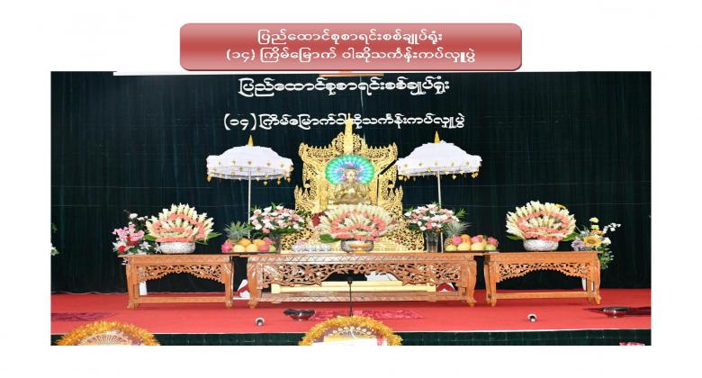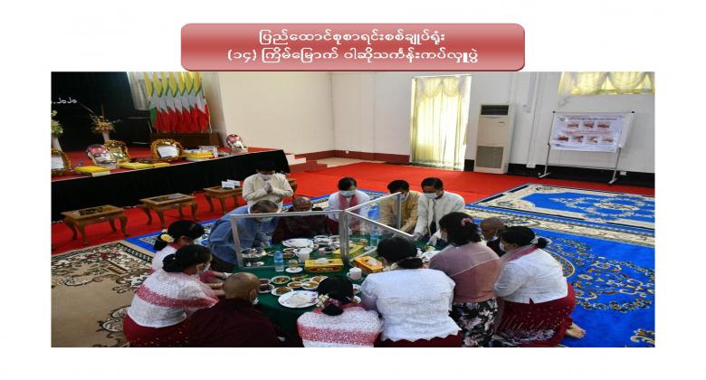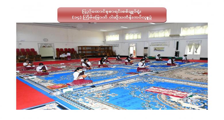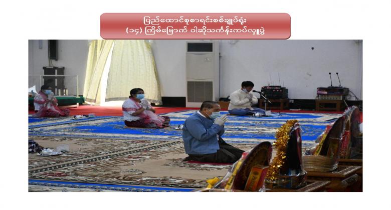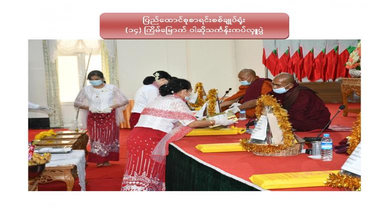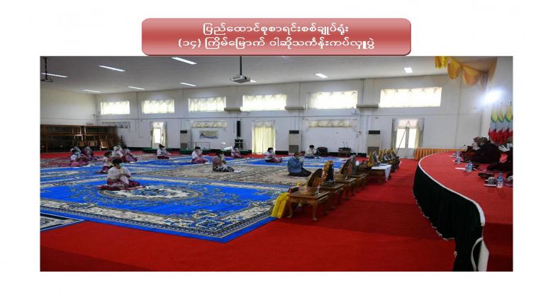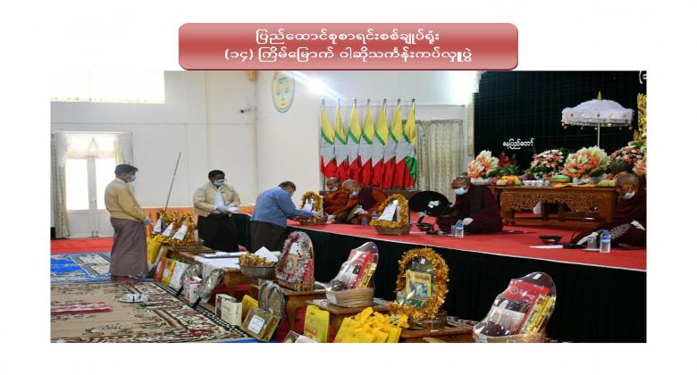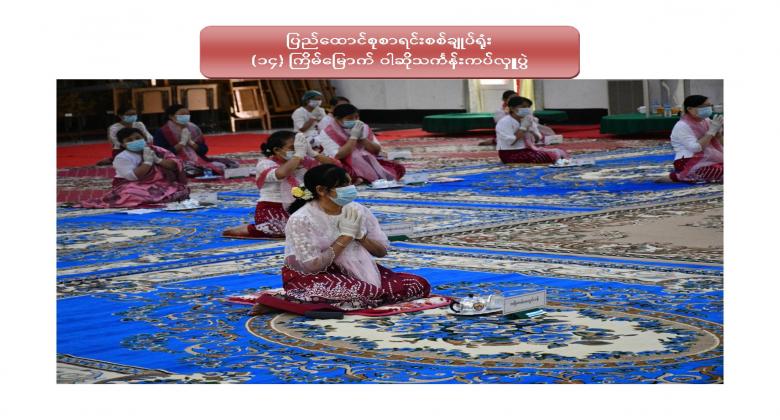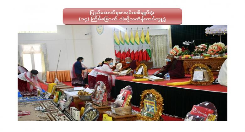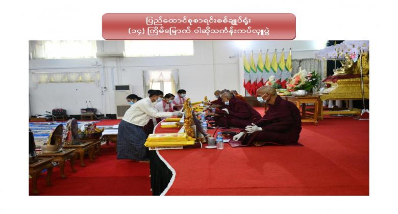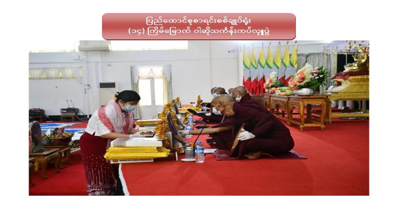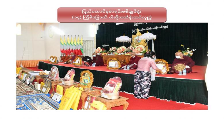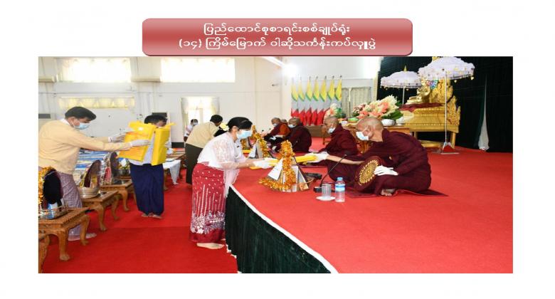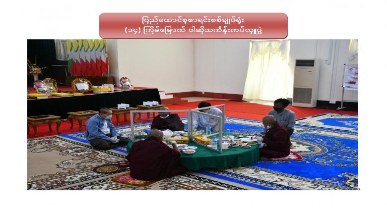 ၁။ ပြည်ထောင်စုစာရင်းစစ်ချုပ်ရုံး (၁၄) ကြိမ်မြောက် ဝါဆိုသင်္ကန်းဆက်ကပ်လှူဒါန်းပွဲကို ၂၀၂၀ ပြည့်နှစ် ၊ ဩဂုတ်လ ၁၂ ရက်နေ့ ၊ နံနက် ၁၀:၀၀ နာရီတွင် ဤရုံး၊ စုပေါင်းခန်းမ၌ Coronavirus Disease 2019 (COVID-19) ကာကွယ်၊ ထိန်းချုပ်၊ ကုသရေးအမျိုးသားအဆင့် ဗဟိုကော်မတီမှ ညွှန်ကြားချက်နှင့်အညီ ကျင်းပပြုလုပ်ခဲ့ပါသည်။