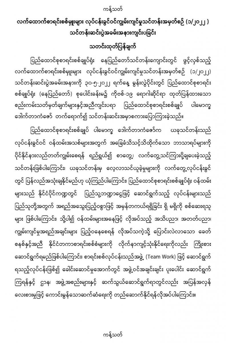 ၃၀-၅-၂၀၂၂ ရက်နေ့တွင် လက်ထောက်စာရင်းစစ်မှူးများ လုပ်ငန်းခွင်ဝင်ကျွမ်းကျင်မှုသင်တန်းအမှတ်စဉ် (၁/၂၀၂၂ ) သင်တန်းဆင်းပွဲအခမ်းအနားကျင်းပခြင်း