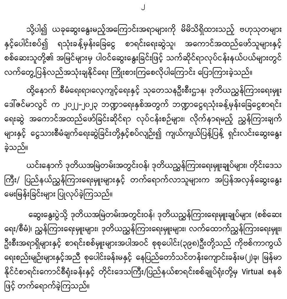 ၂-၆-၂၀၂၂ ရက်နေ့တွင် ဘဏ္ဍာငွေအရအသုံးခန့်မှန်းခြေငွေစာရင်းရေးဆွဲအကောင်အထည်ဖော်ခြင်းနှင့်စပ်လျဉ်းသည့် အသိပညာမျှဝေဆွေးနွေးပွဲကျင်းပခြင်း