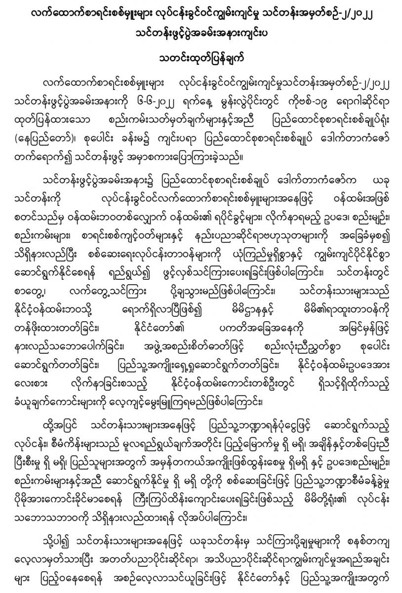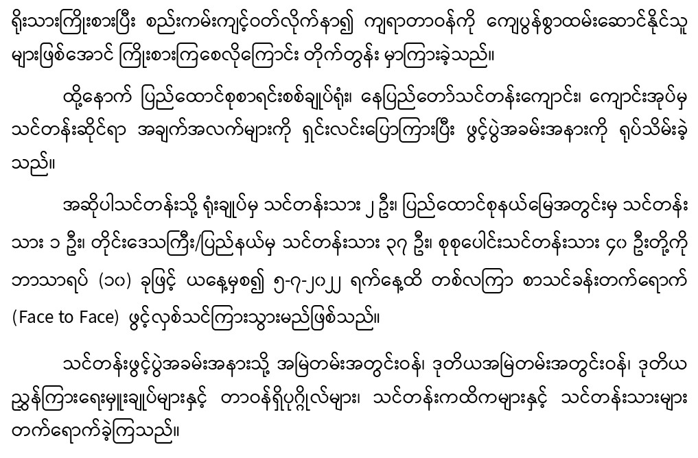 ၆-၆-၂၀၂၂ ရက်နေ့တွင် လက်ထောက်စာရင်းစစ်မှူးများ လုပ်ငန်းခွင်ဝင်ကျွမ်းကျင်မှု သင်တန်းအမှတ်စဉ်-၂/၂၀၂၂ သင်တန်းဖွင့်ပွဲအခမ်းအနားကျင်းပခြင်း