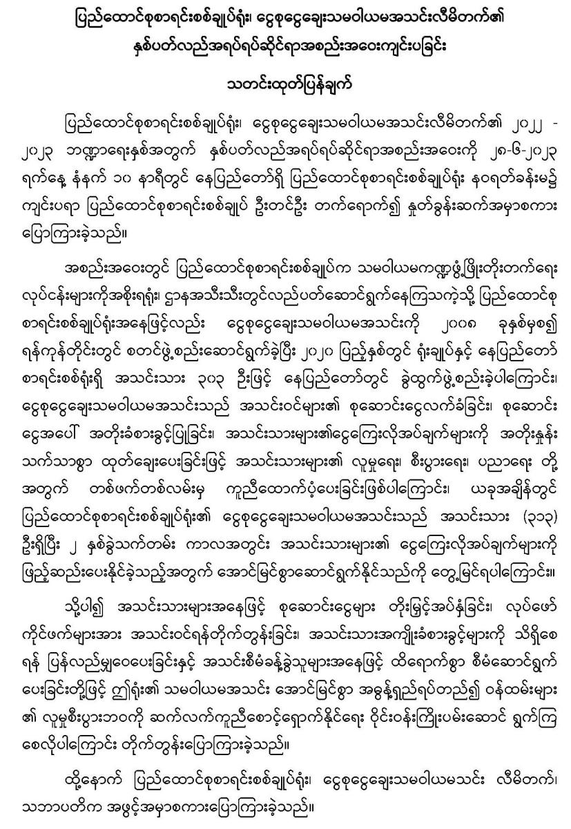 ၂၈-၆-၂၀၂၃ရက်နေ့တွင် ပြည်ထောင်စုစာရင်းစစ်ချုပ်ရုံး၊ ငွေစုငွေချေးသမဝါယမအသင်းလီမိတက်၏နှစ်ပတ်လည်အရပ်ရပ်ဆိုင်ရာအစည်းအဝေးကျင်းပခြင်း