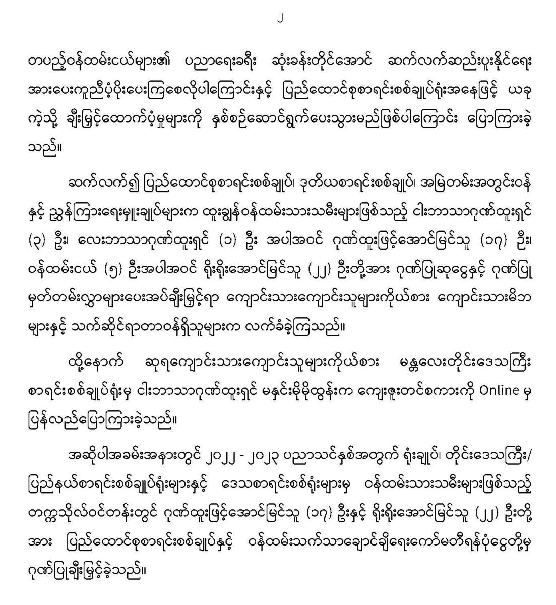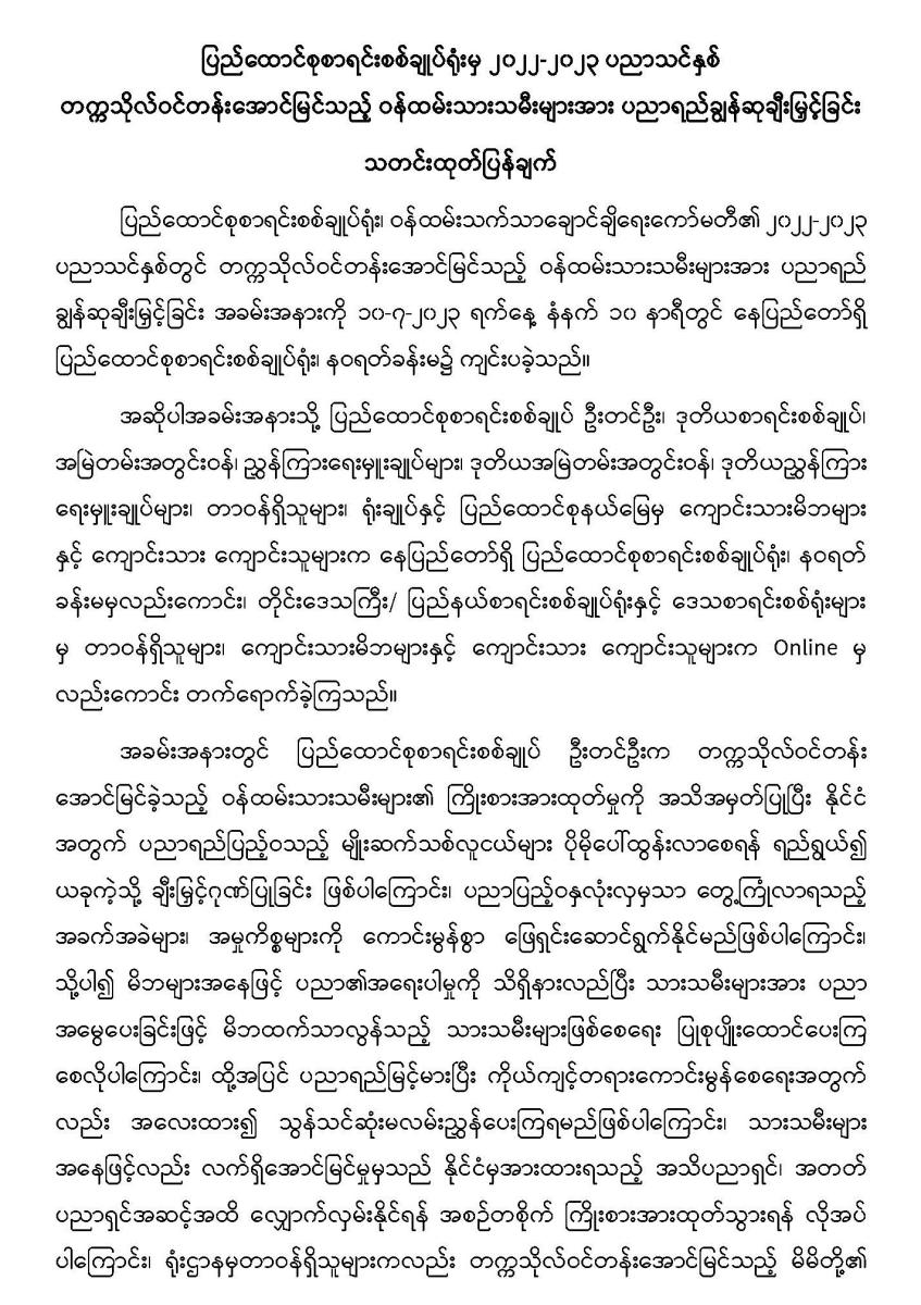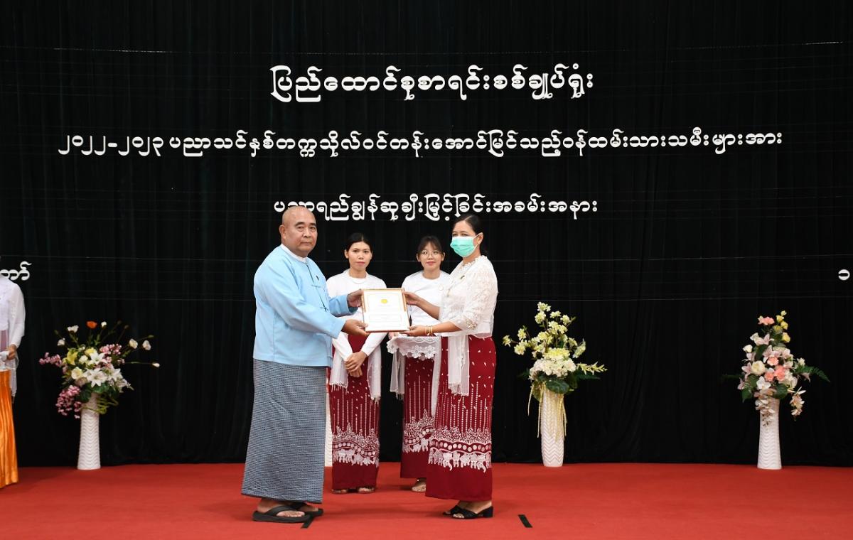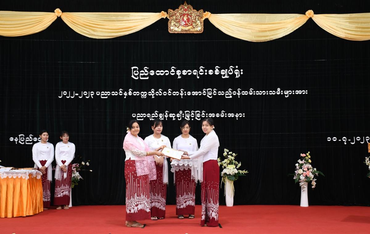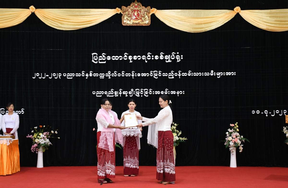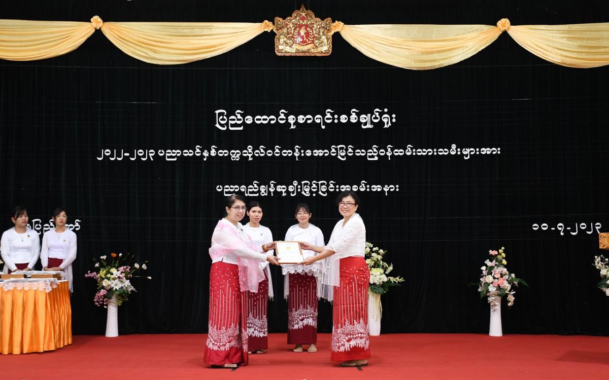 ၁၀-၇-၂၀၂၃ ရက်နေ့တွင် ပြည်ထောင်စုစာရင်းစစ်ချုပ်ရုံးမှ ၂၀၂၂-၂၀၂၃ ပညာသင်နှစ် တက္ကသိုလ်ဝင်တန်းအောင်မြင်သည့် ဝန်ထမ်းသားသမီးများအား ပညာရည်ချွန်ဆုချီးမြှင့်ခြင်း