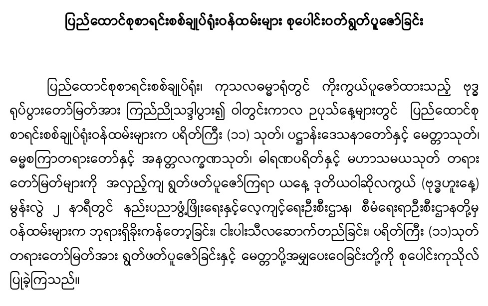 ၁၆-၈-၂၀၂၃ ရက်နေ့တွင် ပြည်ထောင်စုစာရင်းစစ်ချုပ်ရုံးဝန်ထမ်းများ စုပေါင်းဝတ်ရွတ်ပူဇော်ခြင်း