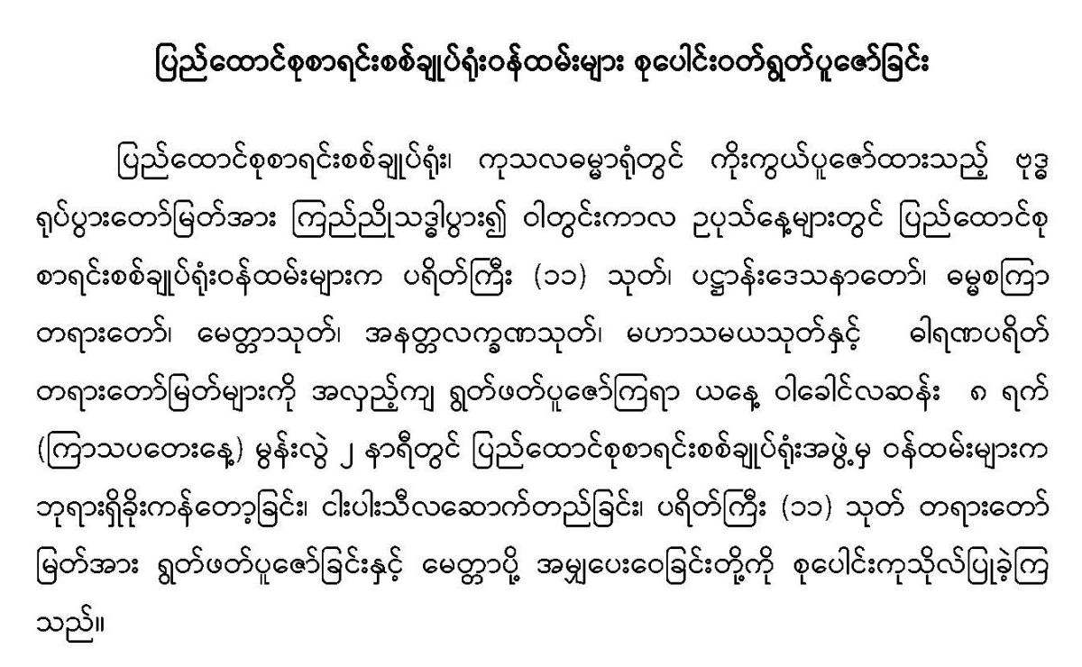 ၂၄-၈-၂၀၂၃ ရက်နေ့တွင် ပြည်ထောင်စုစာရင်းစစ်ချုပ်ရုံးဝန်ထမ်းများ စုပေါင်းဝတ်ရွတ်ပူဇော်ခြင်း