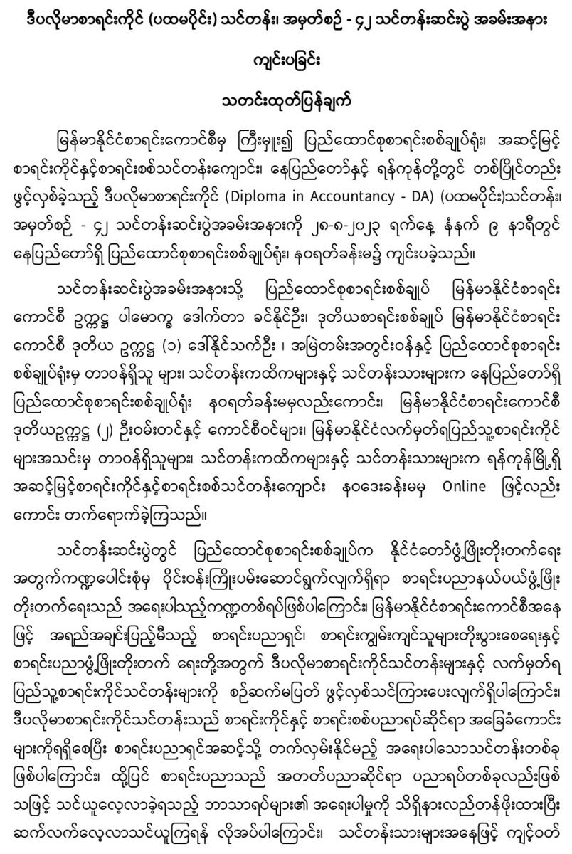ဒီပလိုမာ စာရင်းကိုင်သင်တန်း