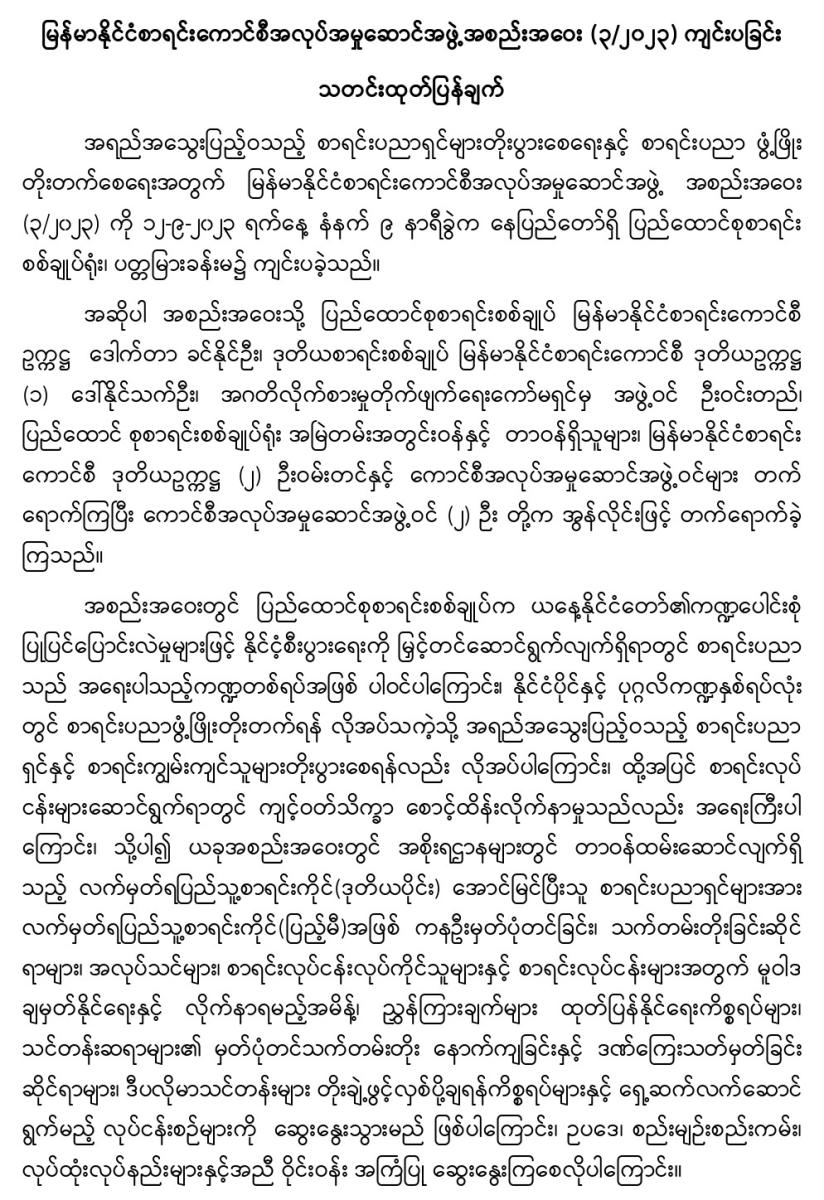 ၁၂-၉-၂၀၂၃ ရက်နေ့တွင် မြန်မာနိုင်ငံစာရင်းကောင်စီအလုပ်အမှုဆောင်အဖွဲ့အစည်းအဝေး (၃/၂၀၂၃) ကျင်းပခြင်း