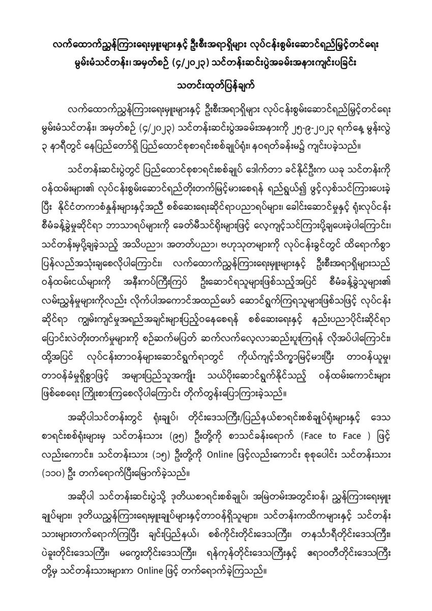 ၂၅-၉-၂၀၂၃ ရက်နေ့တွင် လက်ထောက်ညွှန်ကြားရေးမှူးများနှင့် ဦးစီးအရာရှိများ လုပ်ငန်းစွမ်းဆောင်ရည်မြှင့်တင်ရေး မွမ်းမံသင်တန်း၊ အမှတ်စဉ် (၄/၂၀၂၃) သင်တန်းဆင်းပွဲအခမ်းအနားကျင်းပခြင်း