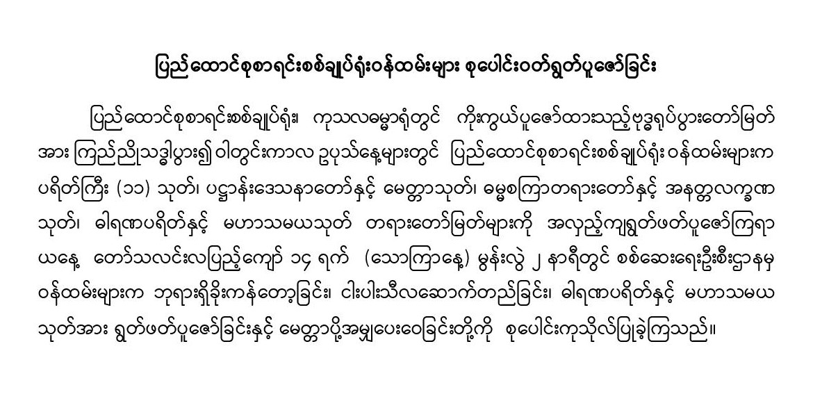 ၁၃-၁၀-၂၀၂၃ ရက်နေ့တွင် ပြည်ထောင်စုစာရင်းစစ်ချုပ်ရုံးဝန်ထမ်းများ စုပေါင်းဝတ်ရွတ်ပူဇော်ခြင်း