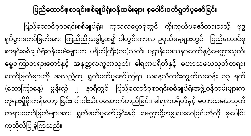 ၂၇-၁၀-၂၀၂၃ ရက်နေ့တွင် ပြည်ထောင်စုစာရင်းစစ်ချုပ်ရုံးဝန်ထမ်းများ စုပေါင်းဝတ်ရွတ်ပူဇော်ခြင်း