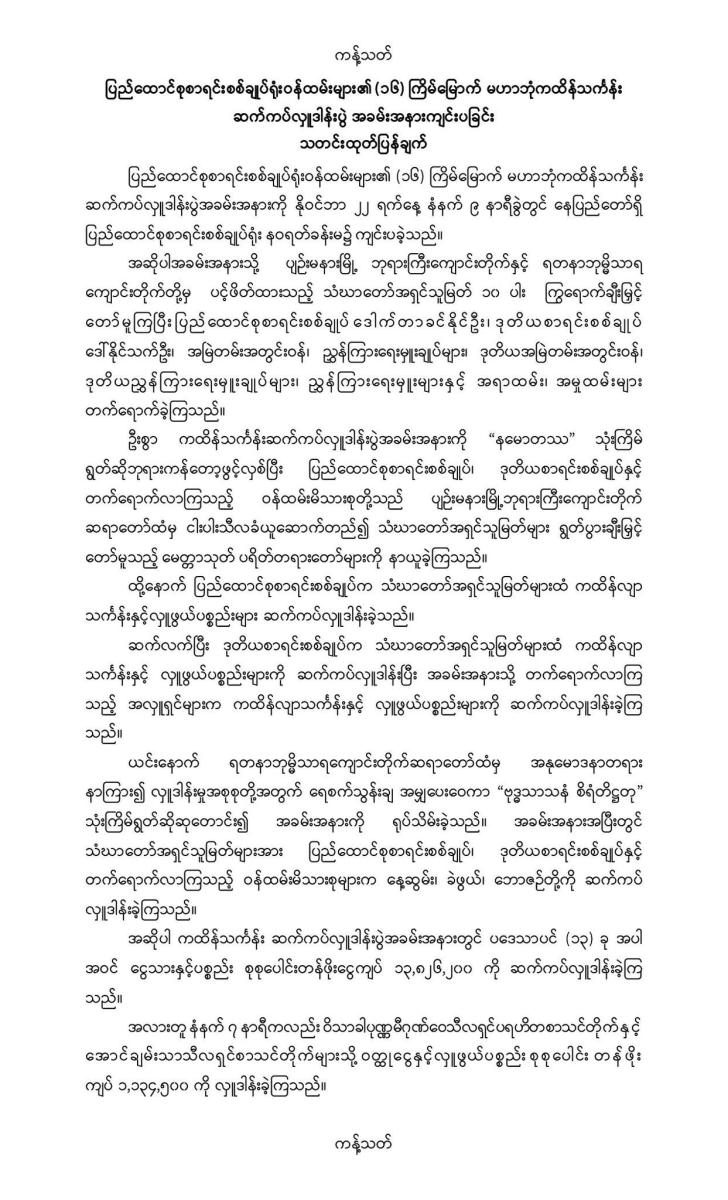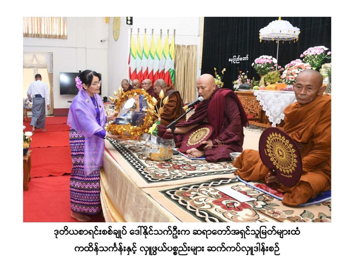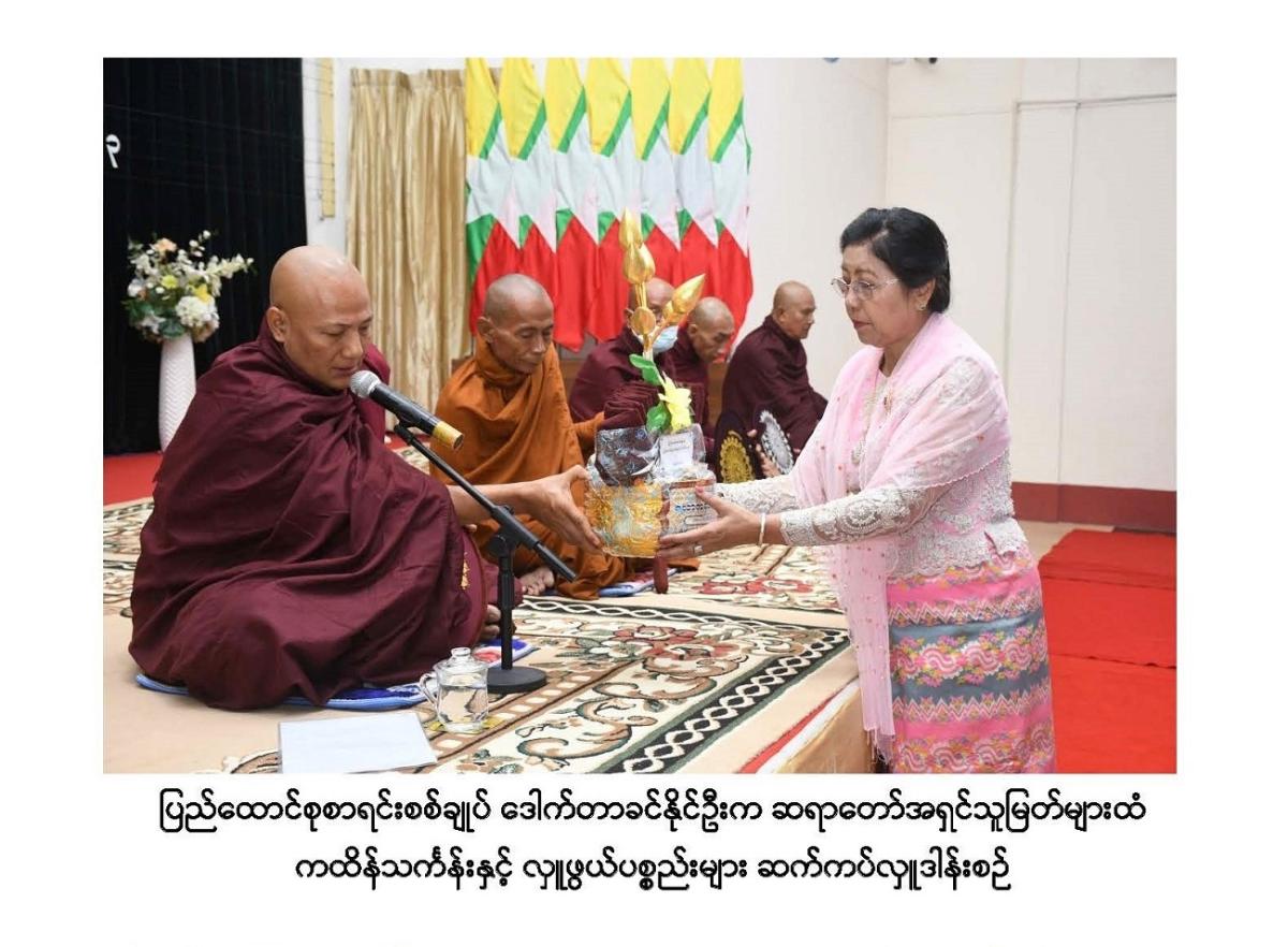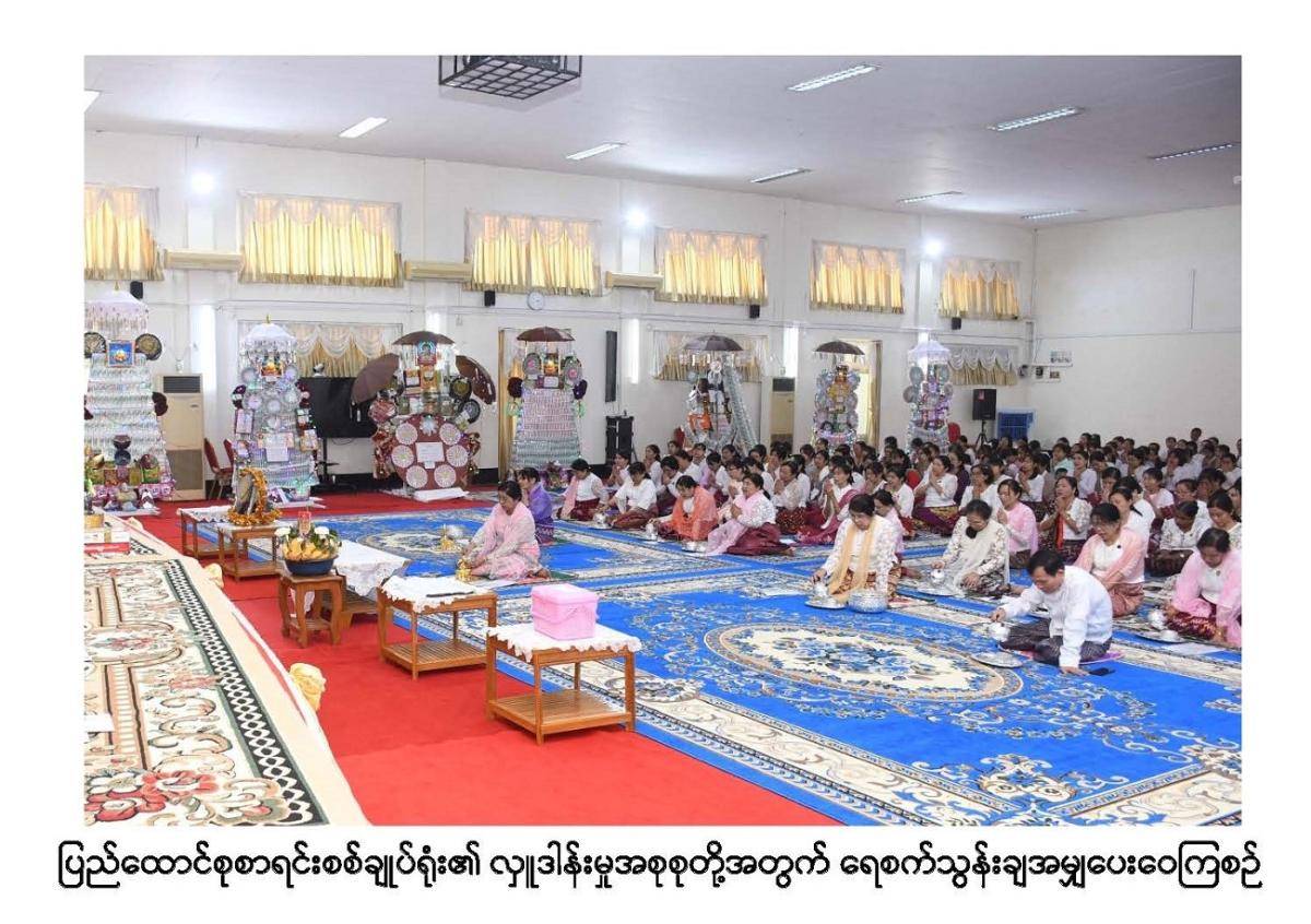 ၂၂-၁၁-၂၀၂၃ ရက်နေ့တွင် ပြည်ထောင်စုစာရင်းစစ်ချုပ်ရုံးဝန်ထမ်းများ၏ (၁၆) ကြိမ်မြောက် မဟာဘုံကထိန်သင်္ကန်း ဆက်ကပ်လှူဒါန်းပွဲ အခမ်းအနားကျင်းပခြင်း