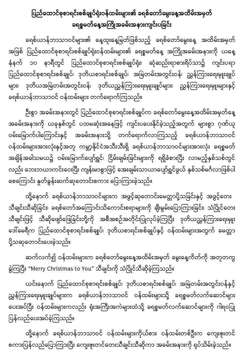 ၂၂-၁၂-၂၀၂၃ ရက်နေ့တွင် ပြည်ထောင်စုစာရင်းစစ်ချုပ်ရုံးဝန်ထမ်းများ၏ ခရစ်တော်မွေးနေ့အထိမ်းအမှတ် ခရစ္စမတ်နေ့အကြိုအခမ်းအနားကျင်းပခြင်း