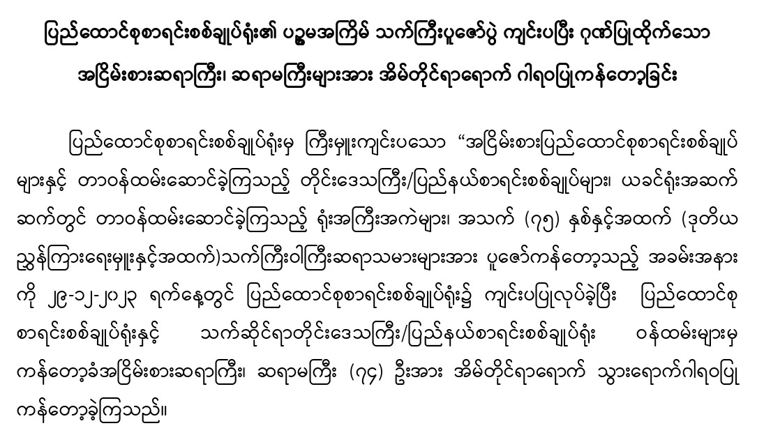 စစ်ဆေးရေးလုပ်ငန်းများဆောင်ရွက်ခြင်း
