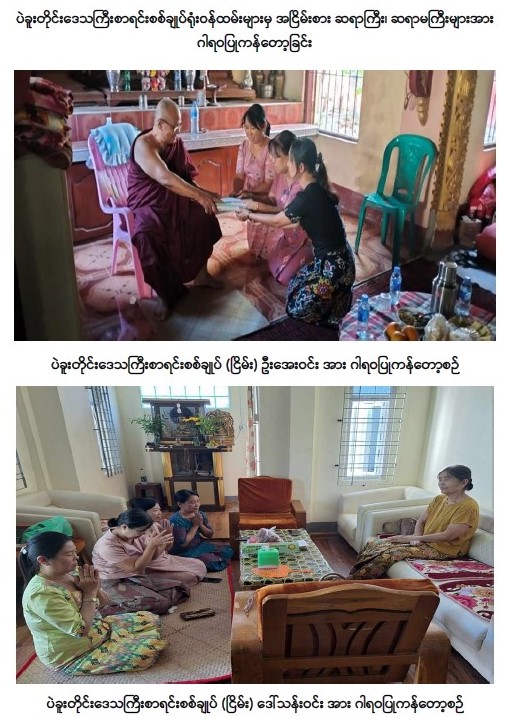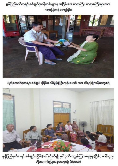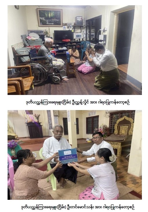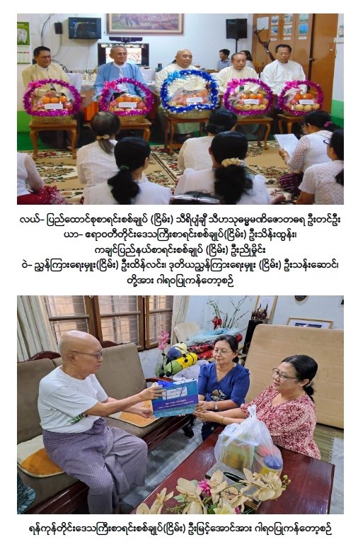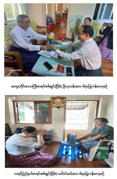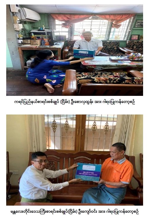 ပြည်ထောင်စုစာရင်းစစ်ချုပ်ရုံး၏ ပဉ္စမအကြိမ် သက်ကြီးပူဇော်ပွဲ ကျင်းပပြီး ဂုဏ်ပြုထိုက်သော အငြိမ်းစားဆရာကြီး၊ ဆရာမကြီးများအား အိမ်တိုင်ရာရောက် ဂါရဝပြုကန်တော့ခြင်း