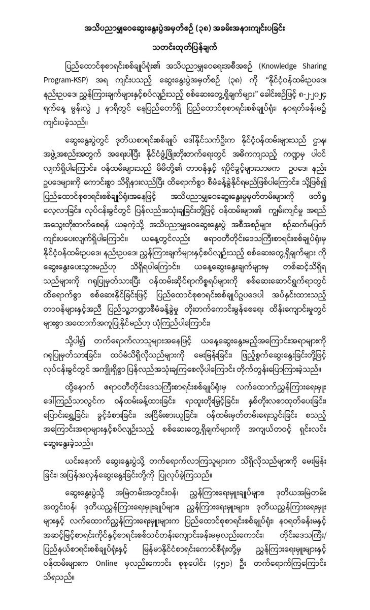 ၈-၂-၂၀၂၄ ရက်နေ့တွင် အသိပညာမျှဝေဆွေးနွေးပွဲအမှတ်စဉ် (၃၈) အခမ်းအနားကျင်းပခြင်း