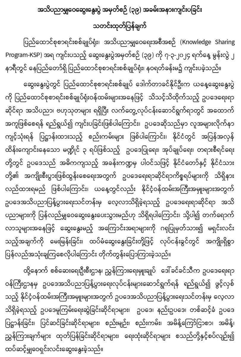 ၇-၃-၂၀၂၄ ရက်နေ့တွင် အသိပညာမျှဝေဆွေးနွေးပွဲ အမှတ်စဉ် (၃၉) အခမ်းအနားကျင်းပခြင်း
