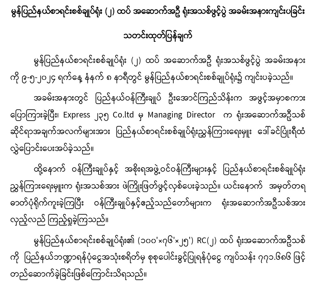 ၉-၅-၂၀၂၄ ရက်နေ့တွင် မွန်ပြည်နယ်စာရင်းစစ်ချုပ်ရုံး (၂) ထပ် အဆောက်အဦ ရုံးအသစ်ဖွင့်ပွဲ အခမ်းအနားကျင်းပခြင်း
