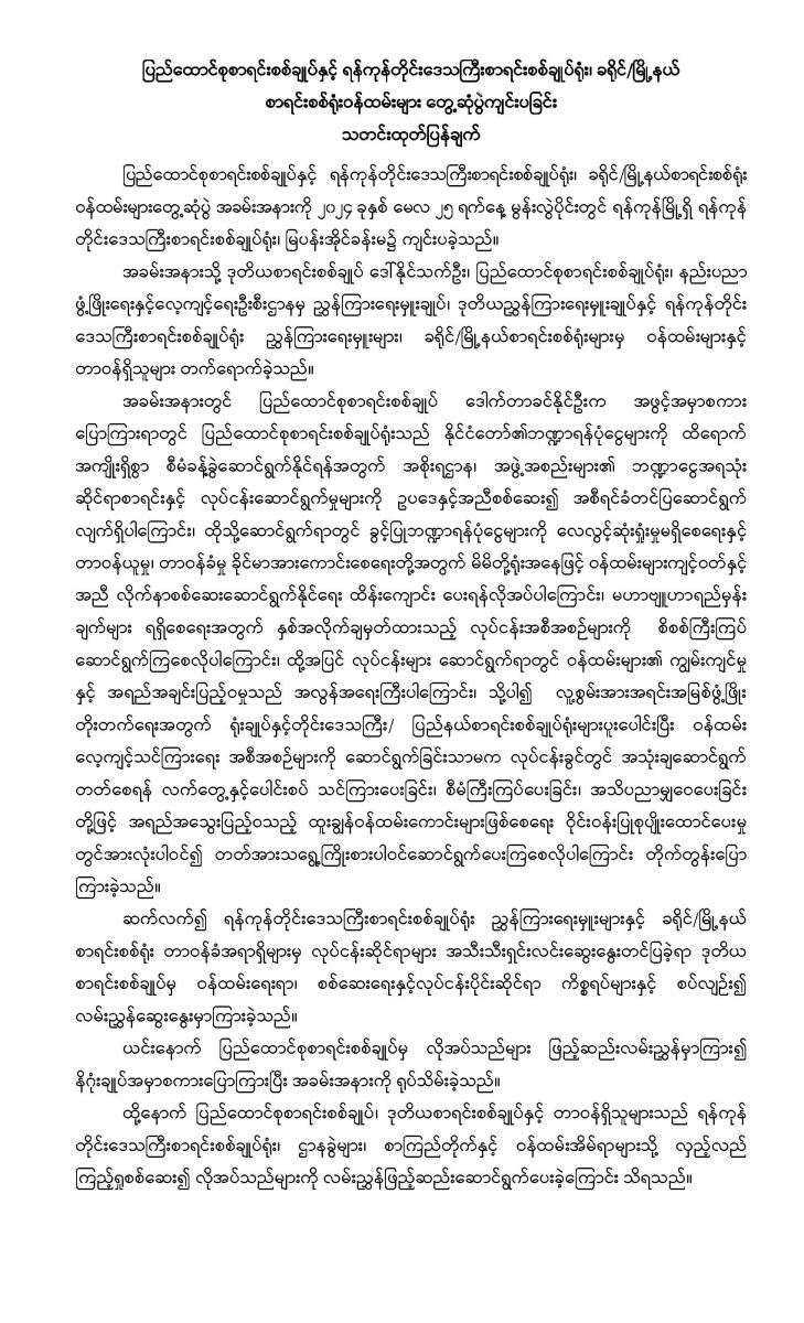 ၂၅-၅-၂၀၂၄ ရက်နေ့ မွန်းလွဲပိုင်းတွင် ပြည်ထောင်စုစာရင်းစစ်ချုပ်နှင့် ရန်ကုန်တိုင်းဒေသကြီးစာရင်းစစ်ချုပ်ရုံး၊ ခရိုင်/မြို့နယ် စာရင်းစစ်ရုံးဝန်ထမ်းများ တွေ့ဆုံပွဲကျင်းပခြင်း