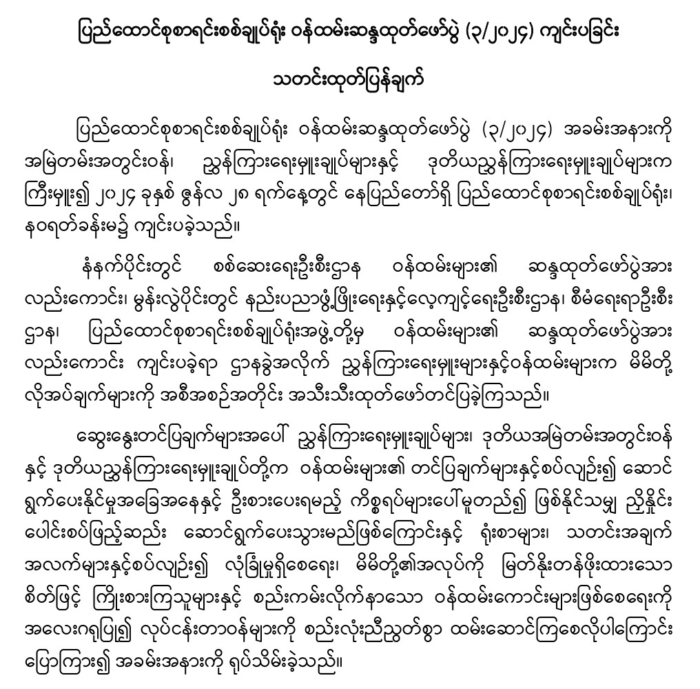 ၂၈-၆-၂၀၂၄ ရက်နေ့တွင် ပြည်ထောင်စုစာရင်းစစ်ချုပ်ရုံး ဝန်ထမ်းဆန္ဒထုတ်ဖော်ပွဲ (၃/၂၀၂၄) ကျင်းပခြင်း
