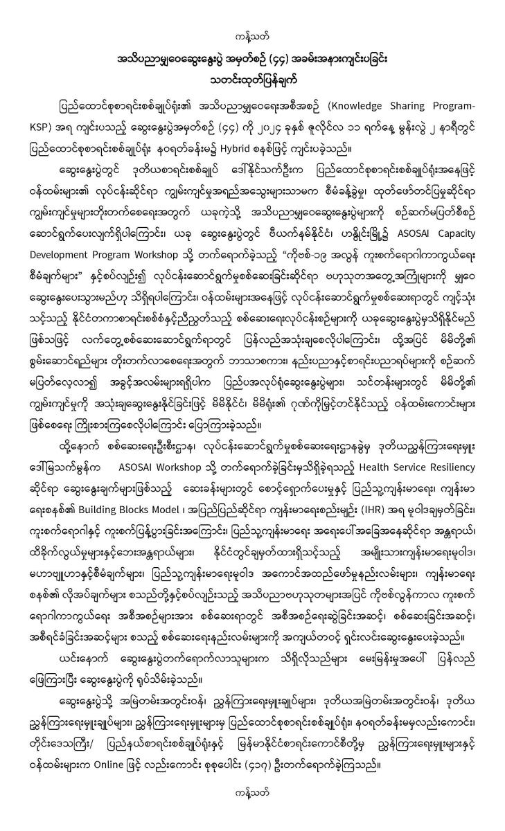 ၁၁-၇-၂၀၂၄ ရက်နေ့တွင် အသိပညာမျှဝေဆွေးနွေးပွဲ အမှတ်စဉ် (၄၄) အခမ်းအနားကျင်းပခြင်း