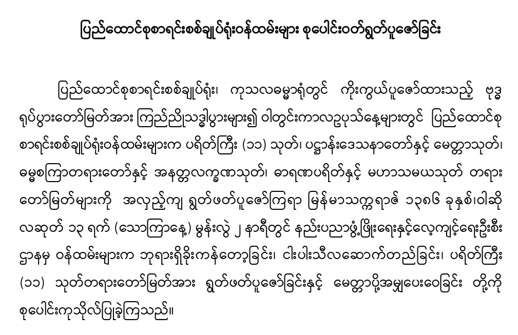မြန်မာနိုင်ငံစာရင်းကောင်စီရုံး၏ ဖွဲ့စည်းပုံ