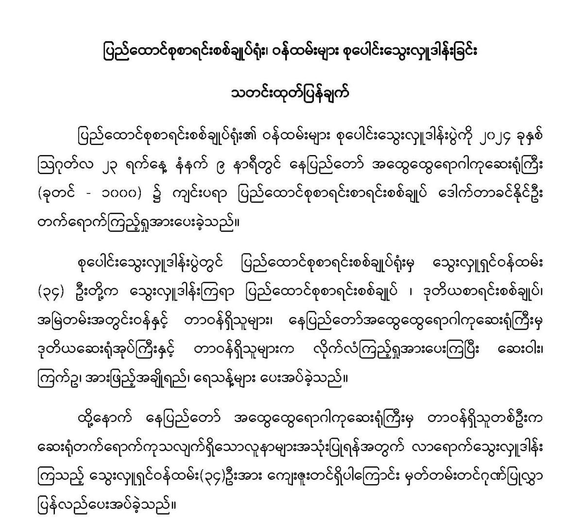 မြန်မာနိုင်ငံစာရင်းကောင်စီ အမှုဆောင်အဖွဲ့ဝင်များ