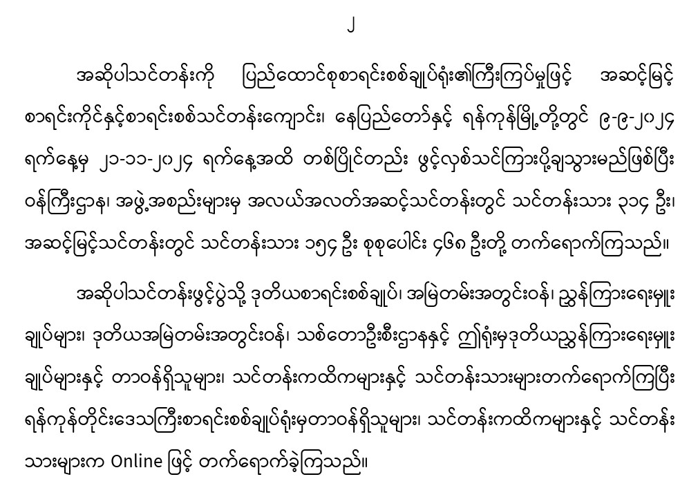 ၉-၉-၂၀၂၄ ရက်နေ့တွင် အလယ်အလတ်အဆင့်/အဆင့်မြင့်စာရင်းကိုင်နှင့် ရုံးလုပ်ငန်းကျွမ်းကျင်မှုသင်တန်း အမှတ်စဉ် (၁၀၂) သင်တန်းဖွင့်ပွဲအခမ်းအနားကျင်းပခြင်း