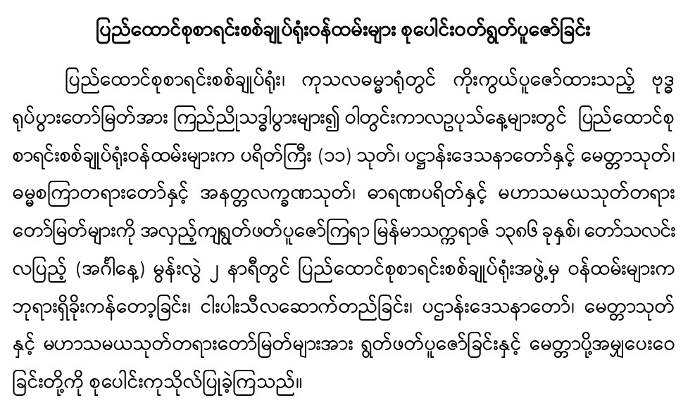 ၁၇-၉-၂၀၂၄ ရက်နေ့တွင် ပြည်ထောင်စုစာရင်းစစ်ချုပ်ရုံးဝန်ထမ်းများ စုပေါင်းဝတ်ရွတ်ပူဇော်ခြင်း