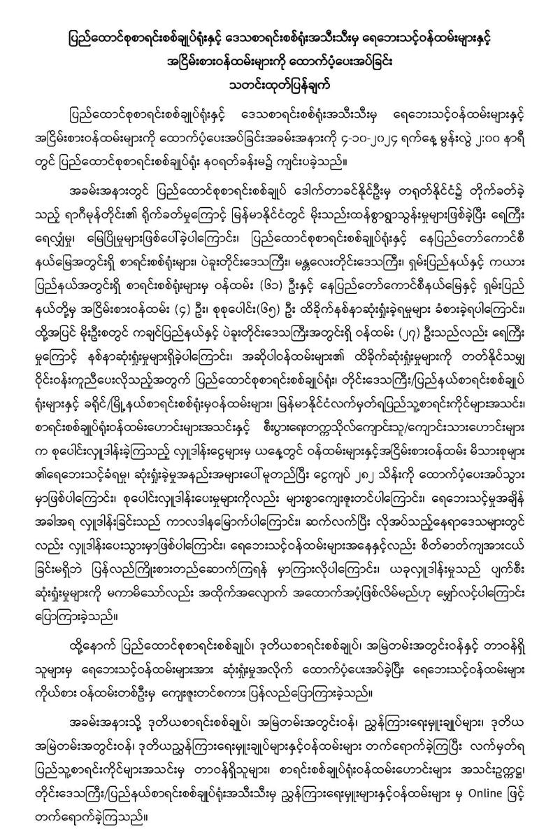 ပြည်ထောင်စုစာရင်းစစ်ချုပ်ရုံးနှင့် ဒေသစာရင်းစစ်ရုံးအသီးသီးမှ ရေဘေးသင့်ဝန်ထမ်းများနှင့် အငြိမ်းစားဝန်ထမ်းများကို ထောက်ပံ့ပေးအပ်ခြင်း