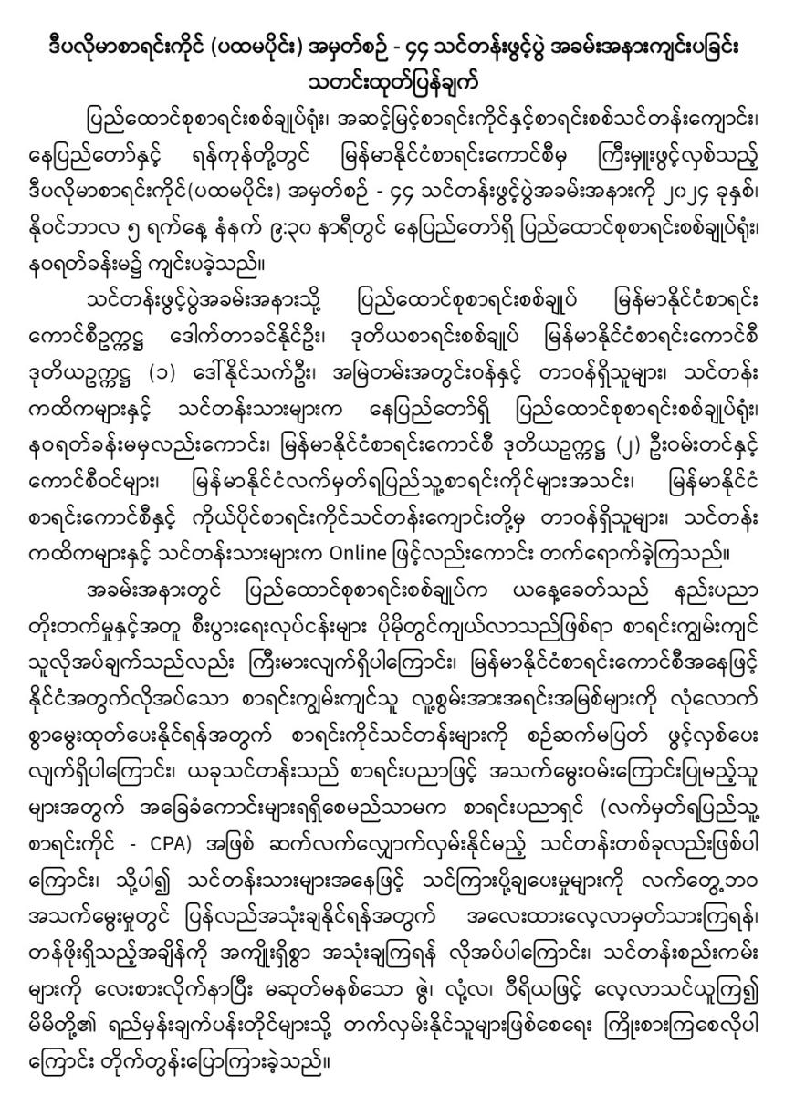 လက်မှတ်ရပြည်သူ့စာရင်းကိုင်သင်တန်း