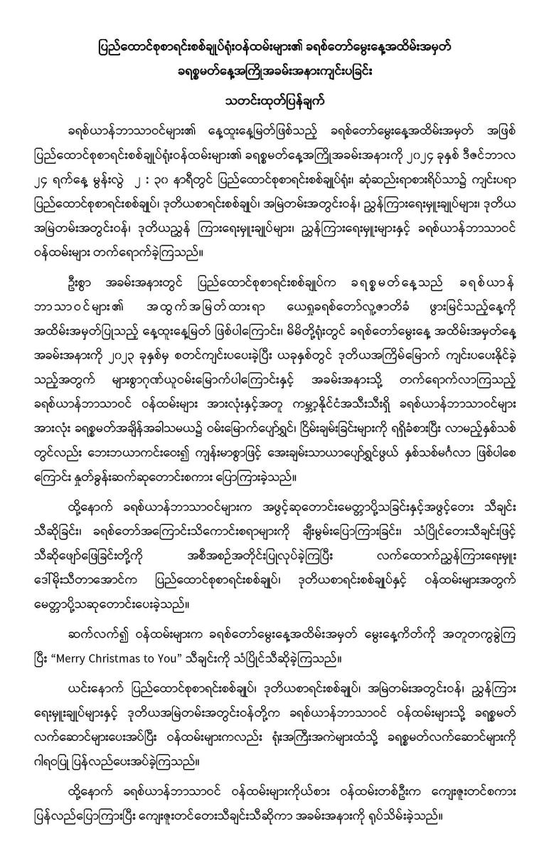 ပြည်ထောင်စုစာရင်းစစ်ချုပ်ရုံးဝန်ထမ်းများ၏ ခရစ်တော်မွေးနေ့အထိမ်းအမှတ် ခရစ္စမတ်နေ့အကြိုအခမ်းအနားကျင်းပခြင်း