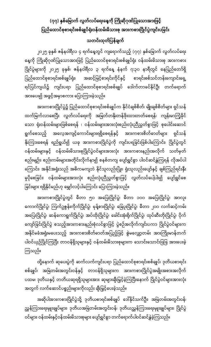 (၇၇) နှစ်မြောက် လွတ်လပ်ရေးနေ့ကို ကြိုဆိုဂုဏ်ပြုသောအားဖြင့် ပြည်ထောင်စုစာရင်းစစ်ချုပ်ရုံးဝန်ထမ်းမိသားစု အားကစားပြိုင်ပွဲကျင်းပခြင်း