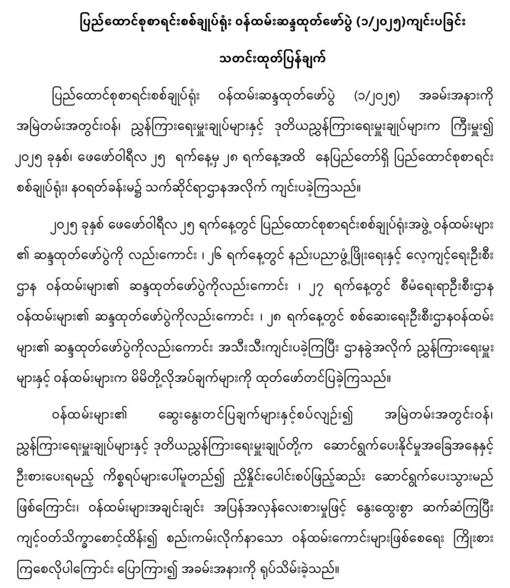 ပြည်ထောင်စုစာရင်းစစ်ချုပ်ရုံး ဝန်ထမ်းဆန္ဒထုတ်ဖော်ပွဲ (၁/၂၀၂၅)ကျင်းပခြင်း