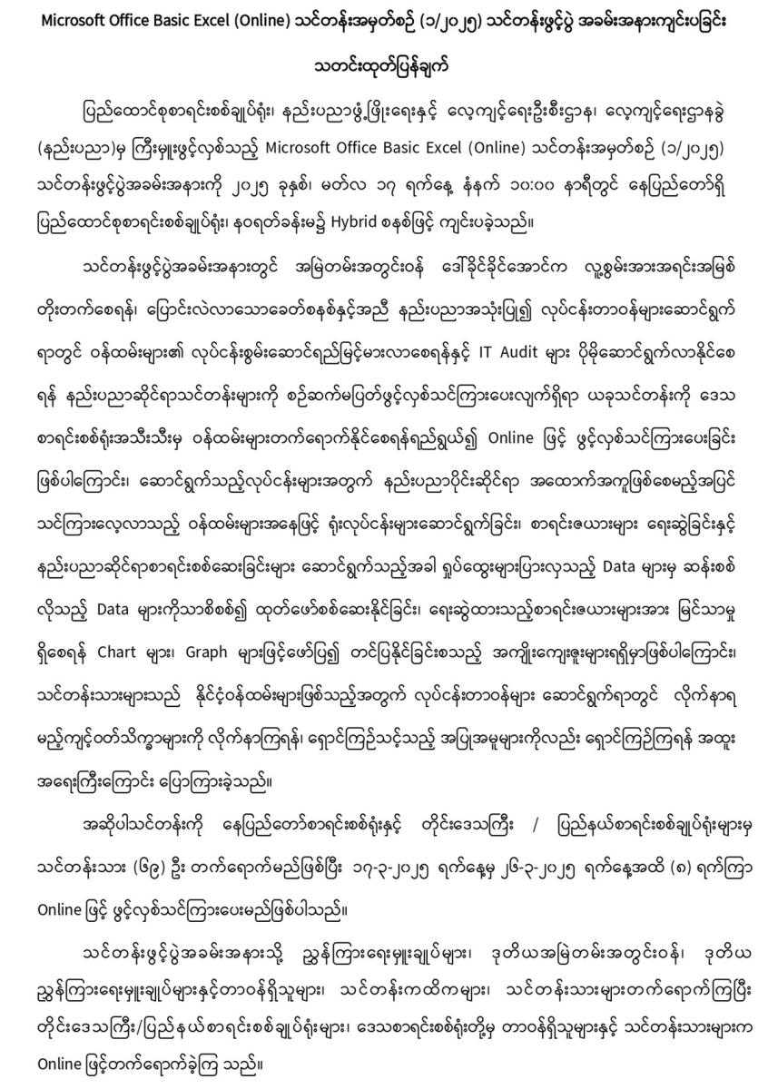 Microsoft Office Basic Excel (Online) သင်တန်းအမှတ်စဉ် (၁/၂၀၂၅) သင်တန်းဖွင့်ပွဲ အခမ်းအနားကျင်းပခြင်း