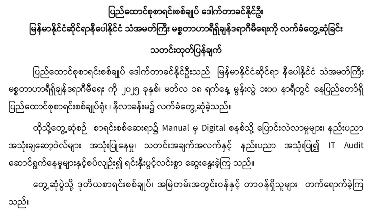 မြန်မာနိုင်ငံစာရင်းကောင်စီလုပ်ငန်းများ