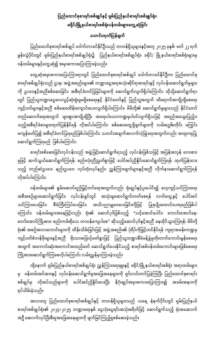 မြန်မာနိုင်ငံစာရင်းကောင်စီရုံး၏ ဖွဲ့စည်းပုံ