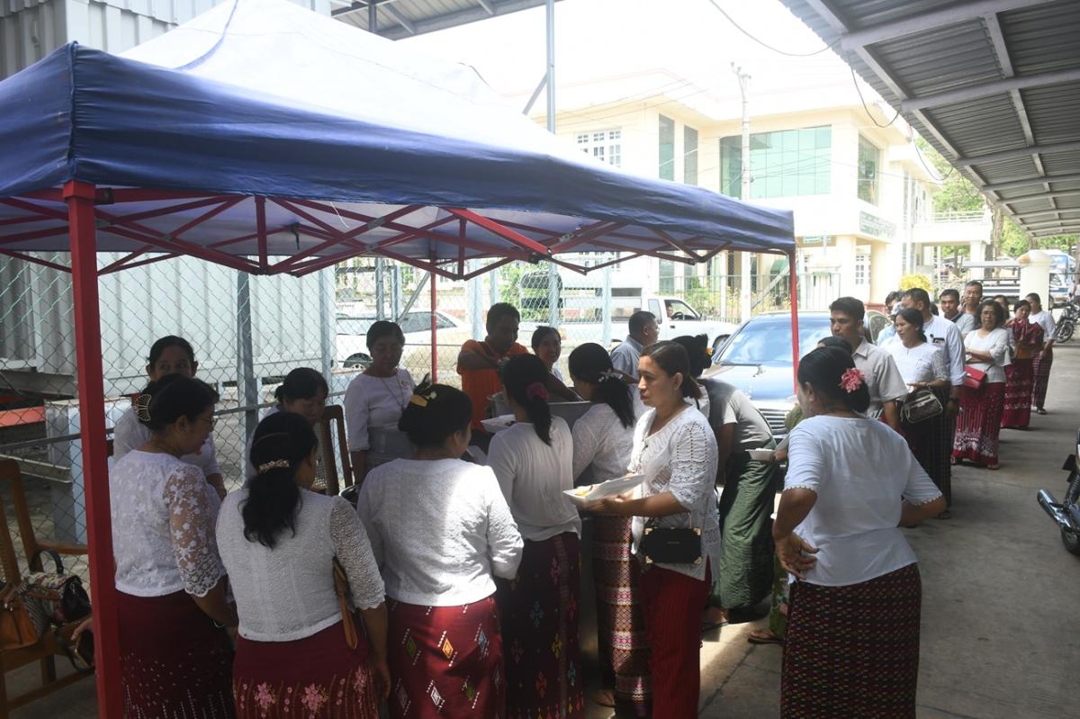 ပြည်ထောင်စုစာရင်းစစ်ချုပ် ဒေါက်တာခင်နိုင်ဦး ဗလသိဒ္ဓိ ရပ်ကွက်ဘောလုံးကွင်း ယာယီတည်းခိုရေးစခန်းတွင် နေထိုင်နေသည့် ပြည်ထောင်စုစာရင်းစစ်ချုပ်ရုံးမှ ဝန်ထမ်းနှင့် ဝန်ထမ်းမိသားစုဝင်များနှင့်တွေ့ဆုံအားပေးခြင်း