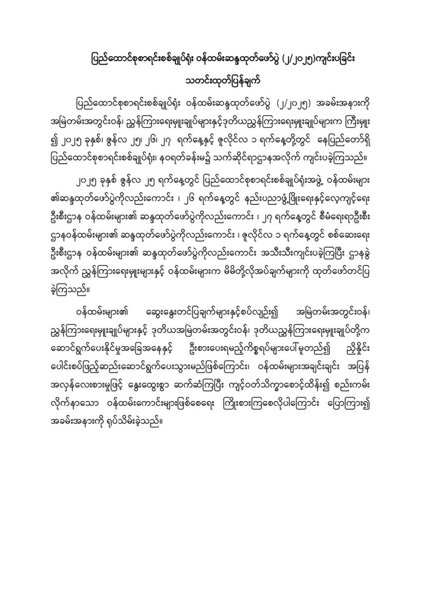 ပြည်ထောင်စုစာရင်းစစ်ချုပ်ရုံး ဝန်ထမ်းဆန္ဒထုတ်ဖော်ပွဲ (၂/၂၀၂၅)ကျင်းပခြင်း