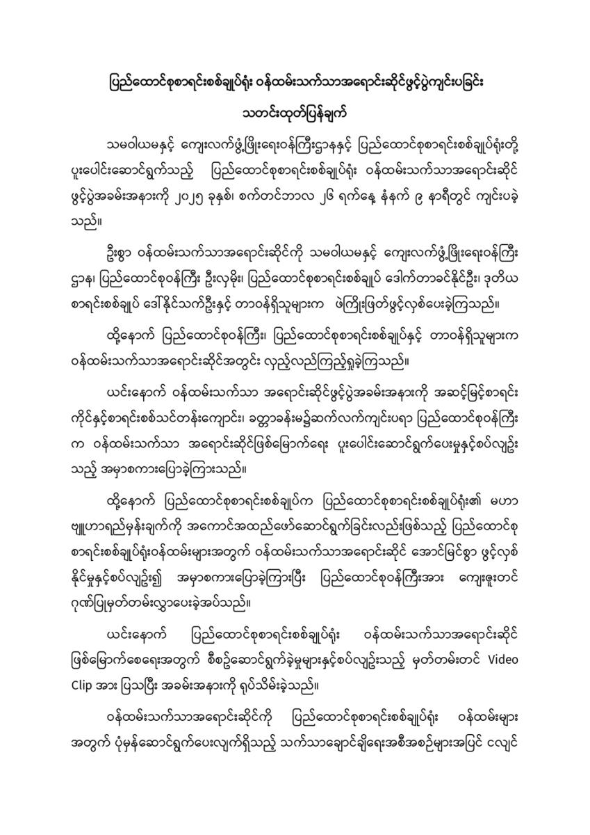 ပြည်ထောင်စုစာရင်းစစ်ချုပ်ရုံး ဝန်ထမ်းသက်သာအရောင်းဆိုင်ဖွင့်ပွဲကျင်းပခြင်း