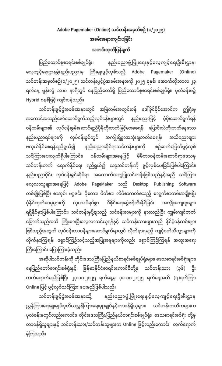 Adobe Pagemaker (Online) သင်တန်းအမှတ်စဉ် (၁/၂၀၂၅) အခမ်းအနားကျင်းပခြင်း