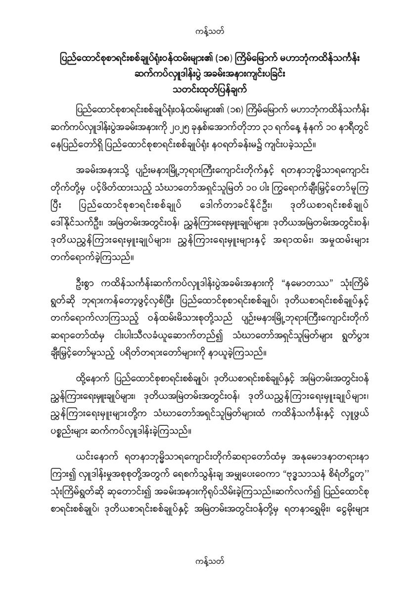 ပြည်ထောင်စုစာရင်းစစ်ချုပ်ရုံးဝန်ထမ်းများ၏ (၁၈) ကြိမ်မြောက် မဟာဘုံကထိန်သင်္ကန်း ဆက်ကပ်လှူဒါန်းပွဲ အခမ်းအနားကျင်းပခြင်း