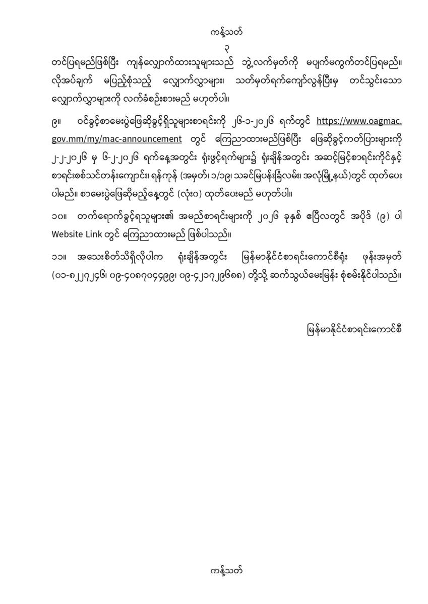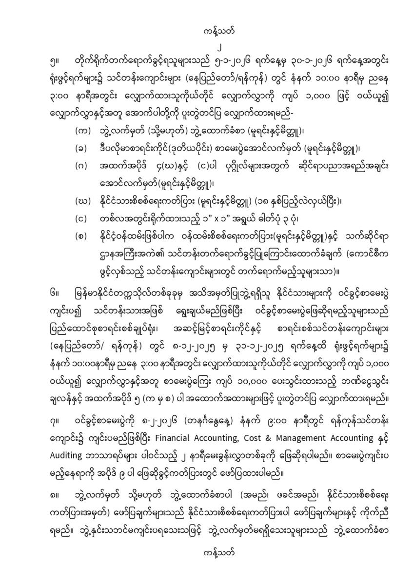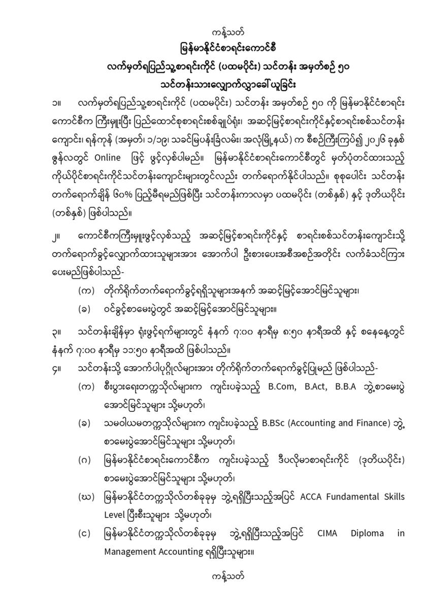 လက်မှတ်ရပြည်သူ့စာရင်းကိုင် (ပထမပိုင်း) သင်တန်းအမှတ်စဥ် (၅၀) သင်တန်းသားလျှောက်လွှာခေါ်ယူခြင်း