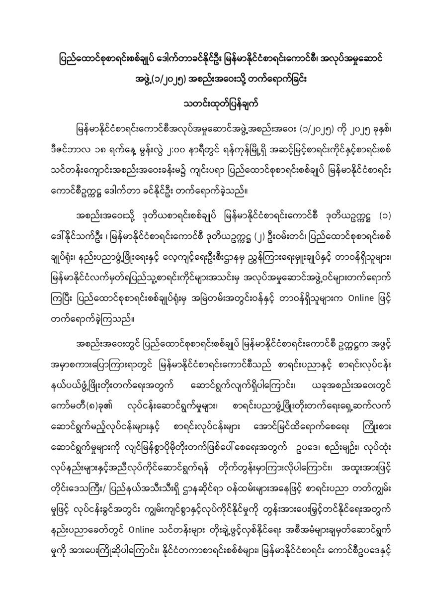မြန်မာနိုင်ငံစာရင်းကောင်စီလုပ်ငန်းများ