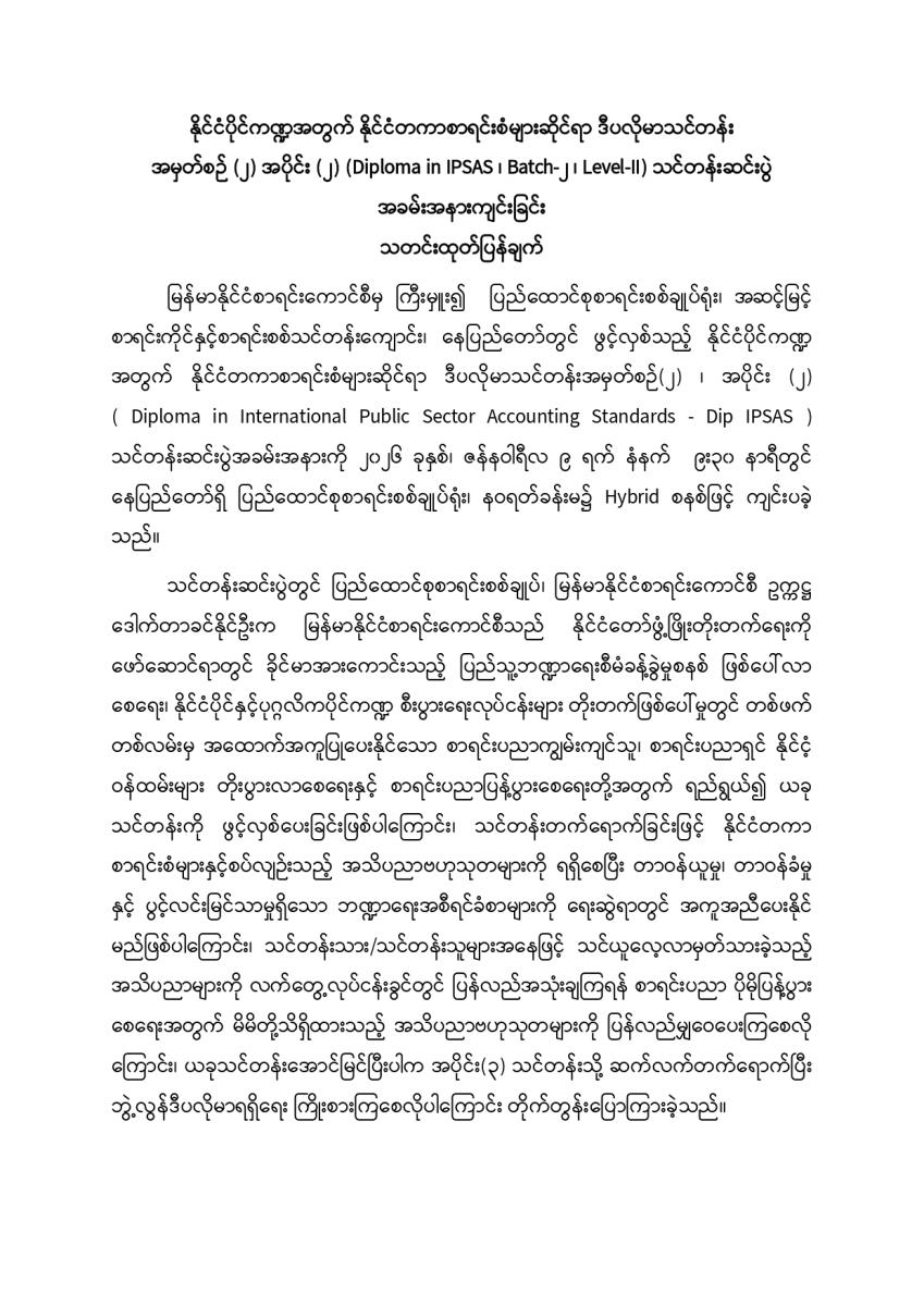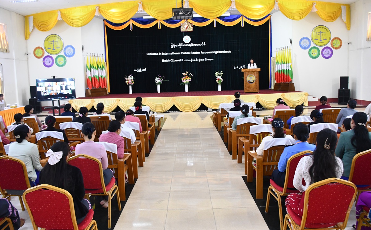 နိုင်ငံပိုင်ကဏ္ဍအတွက် နိုင်ငံတကာစာရင်းစံများဆိုင်ရာ ဒီပလိုမာသင်တန်း အမှတ်စဉ် (၂) အပိုင်း (၂) (Diploma in IPSAS ၊ Batch-2 ၊ Level-II) သင်တန်းဆင်းပွဲ အခမ်းအနားကျင်းခြင်း