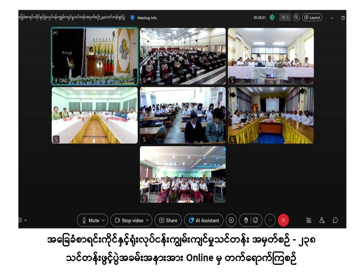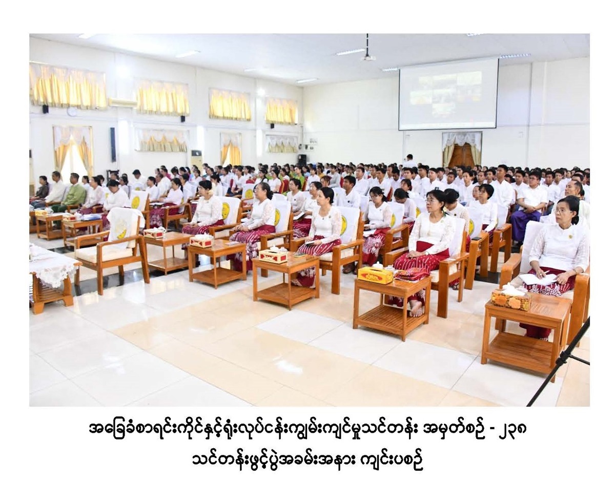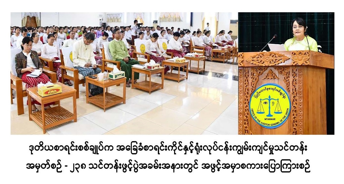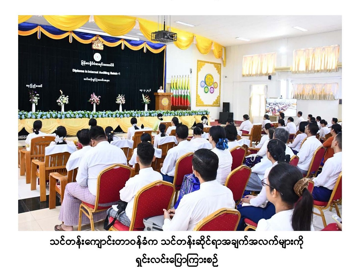 ဌာနတွင်းစာရင်းစစ်ဆေးခြင်း ဒီပလိုမာသင်တန်းအမှတ်စဉ် (၁) နှင့် အခြေခံစာရင်းကိုင်နှင့် ရုံးလုပ်ငန်းကျွမ်းကျင်မှုသင်တန်းအမှတ်စဉ် - ၂၃၈ သင်တန်းဖွင့်ပွဲ အခမ်းအနားကျင်းပခြင်း